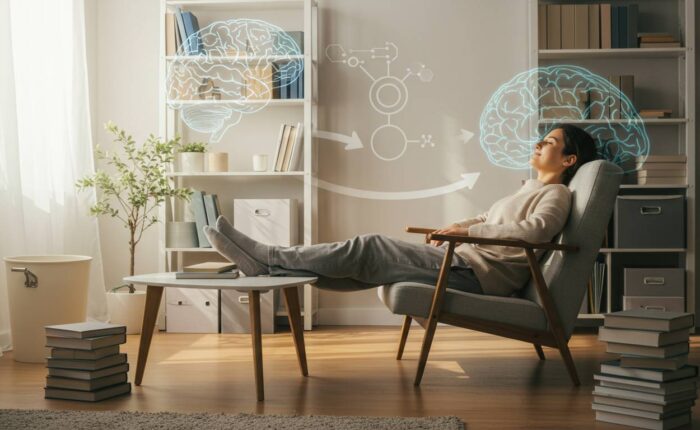 特に注目すべきは「シータ波」の活性化です。片づいた部屋では、リラックス状態で創造性が高まる脳波であるシータ波が優位になります。これが瞑想に似た効果をもたらし、深いリラクゼーション状態へと導きます。
