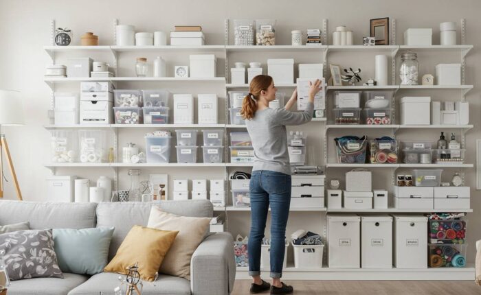 分類したら、使用頻度に応じた場所に収納します。日常的に使うものは手の届きやすい場所に。たまに使うものは少し奥まった場所に。ほとんど使わないものは収納ボックスに入れて押入れの上段や天袋などに。重要なのは、同じカテゴリーのものをまとめること。例えば「思い出の品」はすべて一つの場所にまとめれば、探す手間も省けます。